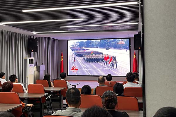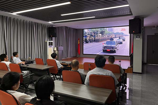 上午9時,閱兵式正式開始。當嘹亮的國歌聲響起,全體員工自發起立,齊聲高唱,莊嚴的氛圍感染著現場每一個人。分列式上,中國人民解放軍將士們步伐鏗鏘、意氣風發;新型武器裝備依次亮相,展現出現代化國防力量的強大實力;一個個震撼人心的畫面,讓在場員工心潮澎湃,民族自豪感油然而生。閱兵儀式令人心潮澎湃,不僅增強了民族自豪感,也更深刻體會到和平的珍貴與奮斗的意義。